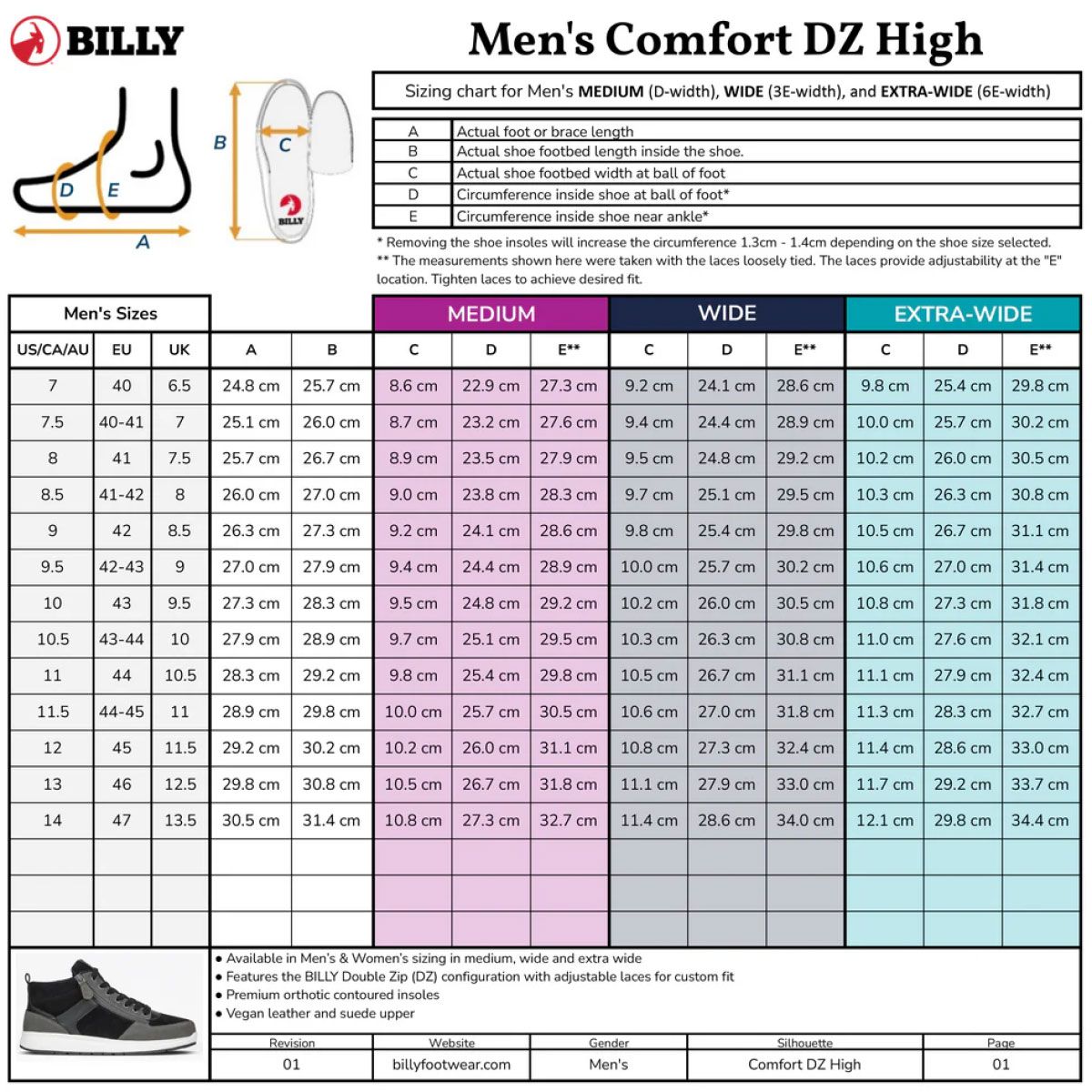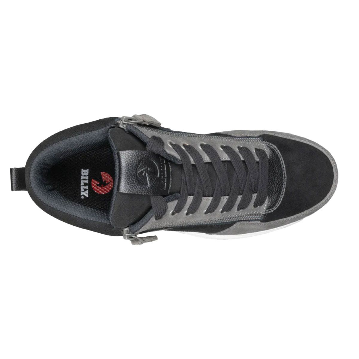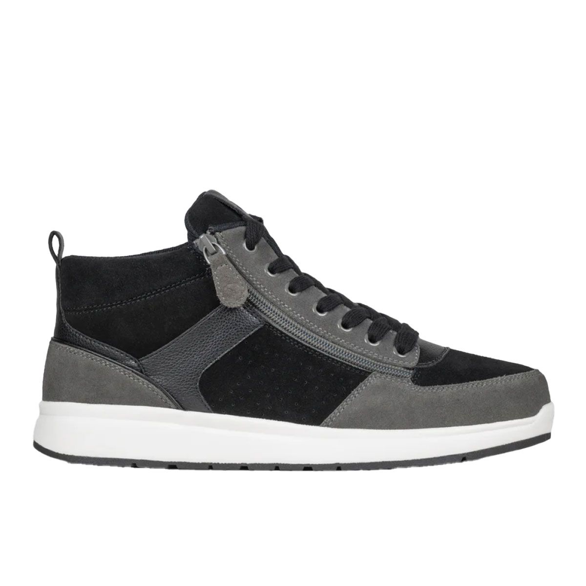 Billy Black/Charcoal/Black Comfort DZ High Schuhe Kombiniert zeitgenössischen Stil mit funktionaler Leichtigkeit. Hergestellt aus veganem Leder und Wildleder in einem eleganten Schwarz-Anthrazit-Kontrast. Dank des einzigartigen Doppelreißverschlusses an der Innen- und Außenseite lässt sich der Schuh wie ein High-Top weit öffnen, sodass Sie ihn mühelos an- und ausziehen können und er dennoch sicher sitzt. Der Schuh verfügt über eine herausnehmbare, geformte Innensohle für zusätzlichen Halt, eine stoßdämpfende Zwischensohle und eine strapazierfähige Gummi-Außensohle für optimalen Grip. Erhältlich in drei Weiten für eine perfekte Passform.