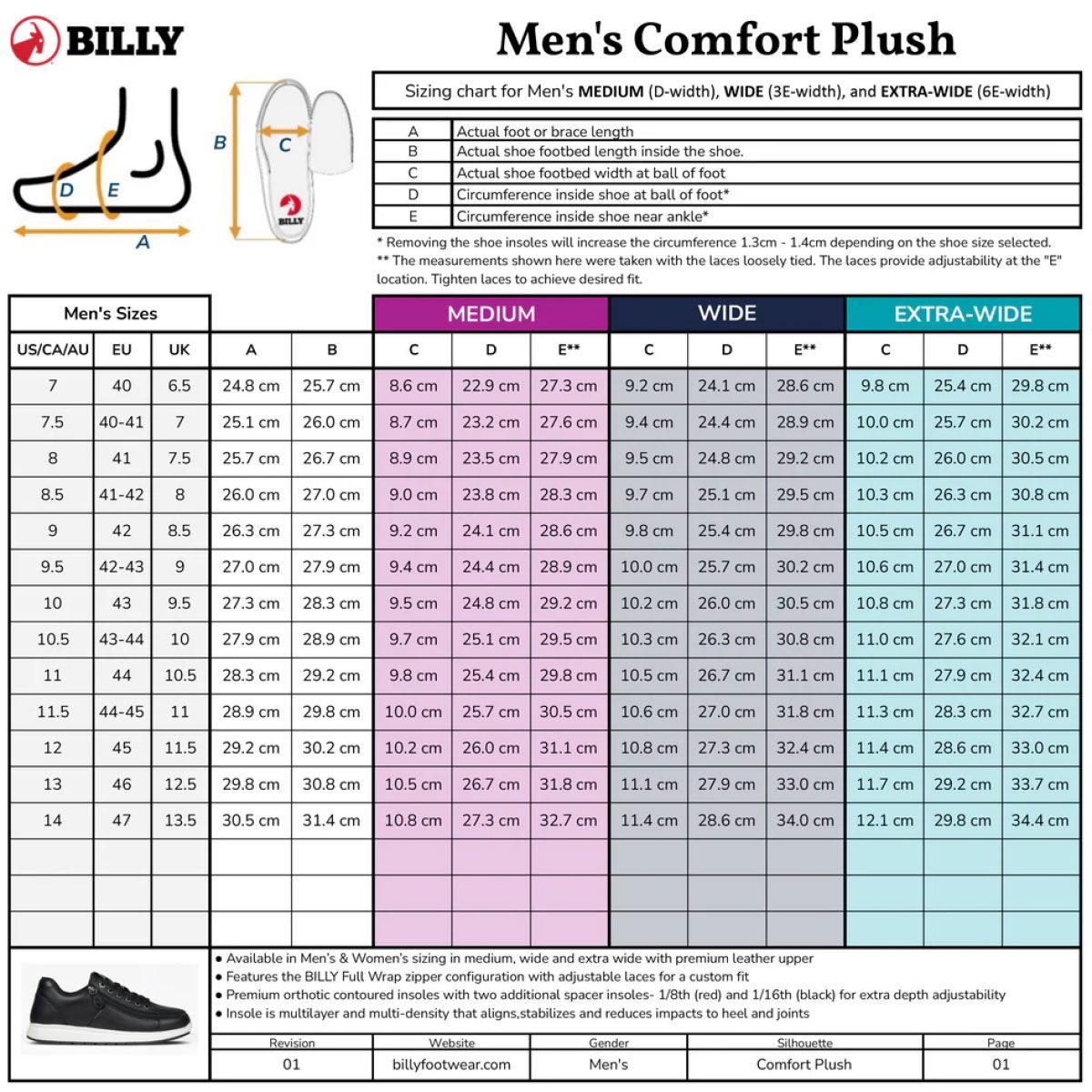Billy Charcoal Suede Comfort Plush Schuhe bietet ultimativen Komfort und Halt, ohne Kompromisse beim Stil einzugehen. Mit seiner weichen Wildlederaußenseite und der gefütterten Strickinnenseite fühlt sich dieser Schuh wie eine warme Umarmung an Ihren Füßen an. Der charakteristische BILLY-Reißverschluss erleichtert das An- und Ausziehen – ideal für alle, die Schlichtheit und Funktionalität suchen. Im Lieferumfang sind zwei zusätzliche Einlagen enthalten, mit denen Sie den benötigten Platz mit oder ohne Orthese oder Fußgewölbestütze individuell anpassen können. Der Schuh verfügt über eine konturierte, herausnehmbare Innensohle, eine stoßdämpfende Schaumstoffzwischensohle und eine robuste Gummisohle für den Alltag. Der BILLY Comfort Plush ist Ihr neuer Favorit für zu Hause und unterwegs und in verschiedenen Weiten für die perfekte Passform erhältlich.
