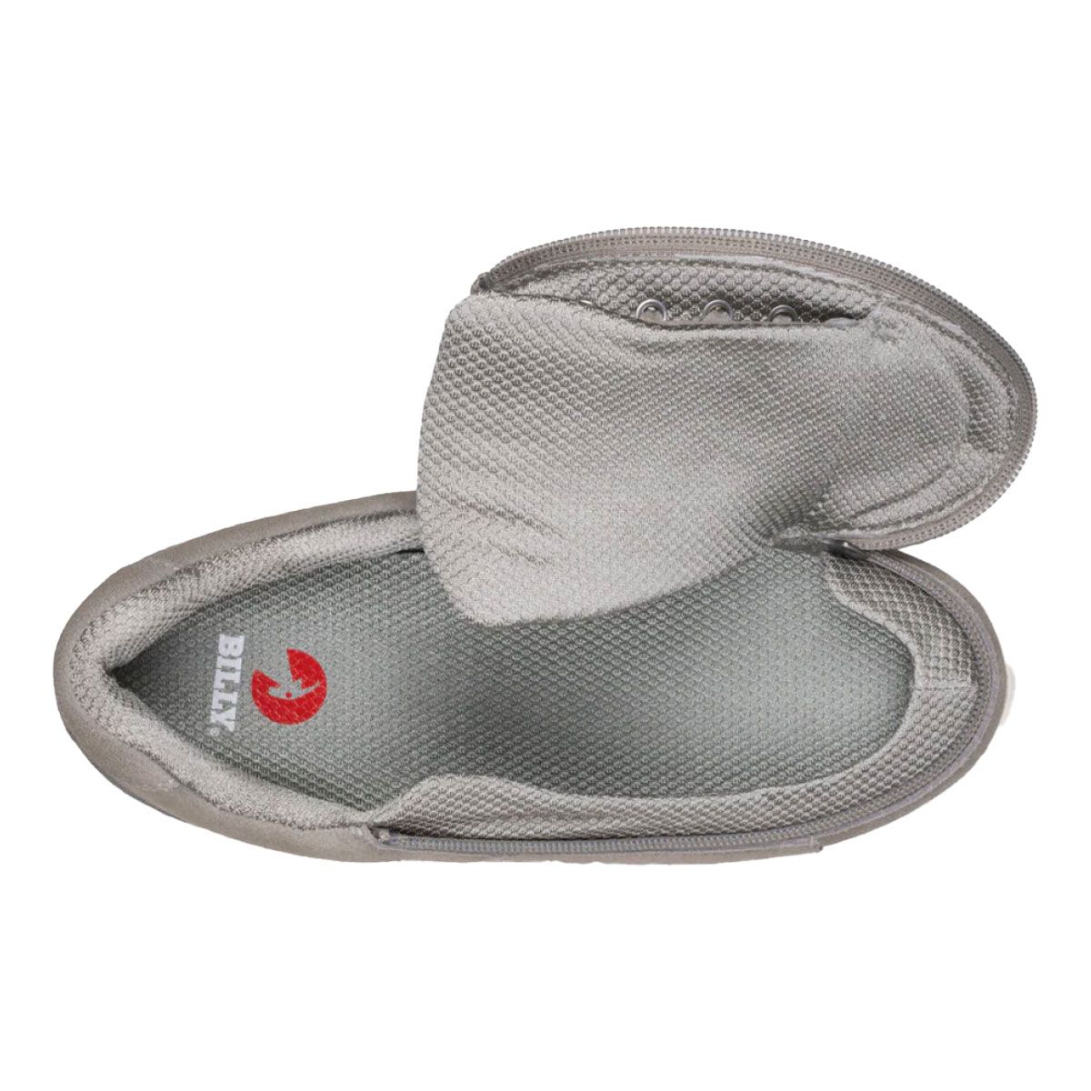 Billy Gray Suede Leather Comfort Plush Schuhe ist eine stilvolle und funktionale Ergänzung für Ihren Alltag. Das geschmeidige Obermaterial aus Leder und das weiche Strickfutter sorgen für einen bequemen und langlebigen Schuh. Der charakteristische BILLY-Reißverschluss erleichtert das An- und Ausziehen – ideal für alle, die Wert auf Komfort und Eleganz legen. Im Lieferumfang sind zwei zusätzliche Einlegesohlen enthalten, sodass Sie den benötigten Platz mit oder ohne Orthese oder Fußgewölbestütze individuell anpassen können. Der Schuh verfügt über eine konturierte, herausnehmbare Innensohle, eine stoßdämpfende Schaumstoff-Zwischensohle und eine robuste Gummisohle für den täglichen Gebrauch. Erhältlich in verschiedenen Weiten für eine perfekte Passform.