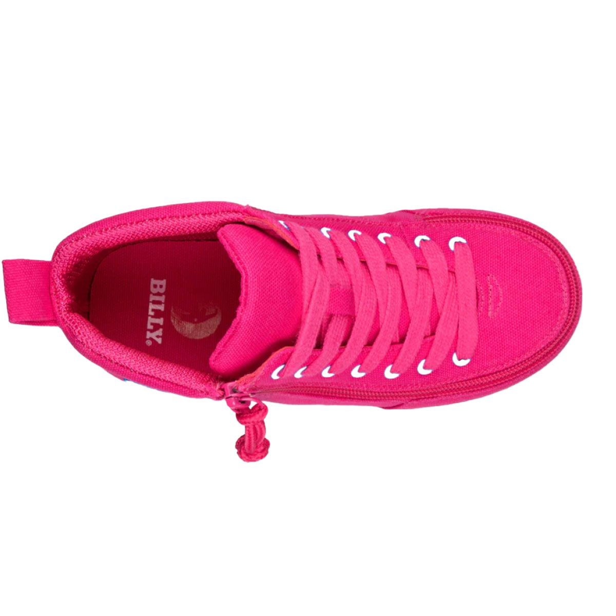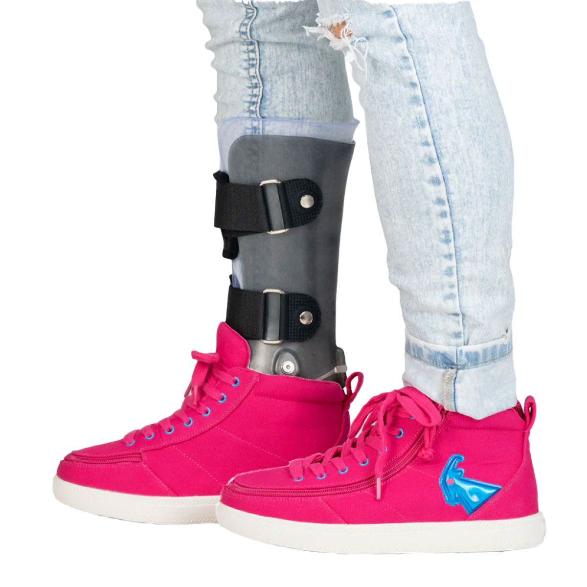 Billy Pink/Blue Light Ups Classic D|R High Tops Schuhe Spielen, leuchten, wiederholen: Der rosa/blaue BILLY Classic D|R High mit Leuchteffekt für Kinder vereint fröhliche Lichter mit kindgerechter Leichtigkeit. Hergestellt aus Canvas mit robustem Strickfutter für Komfort bei jedem Schritt. Ein umlaufender Reißverschluss erleichtert das An- und Ausziehen, und die Schnürsenkel sorgen für zusätzliche Passformkontrolle. Der Schuh wird mit zwei herausnehmbaren Einlegesohlen (je 3 mm) geliefert, die sich bequem in der Tiefe anpassen lassen, wenn Sie eine Orthese oder Einlage tragen. Erhältlich in den Weiten Standard (MDR) und Wide (WDR). Die Lichter werden bei Bewegung automatisch aktiviert.